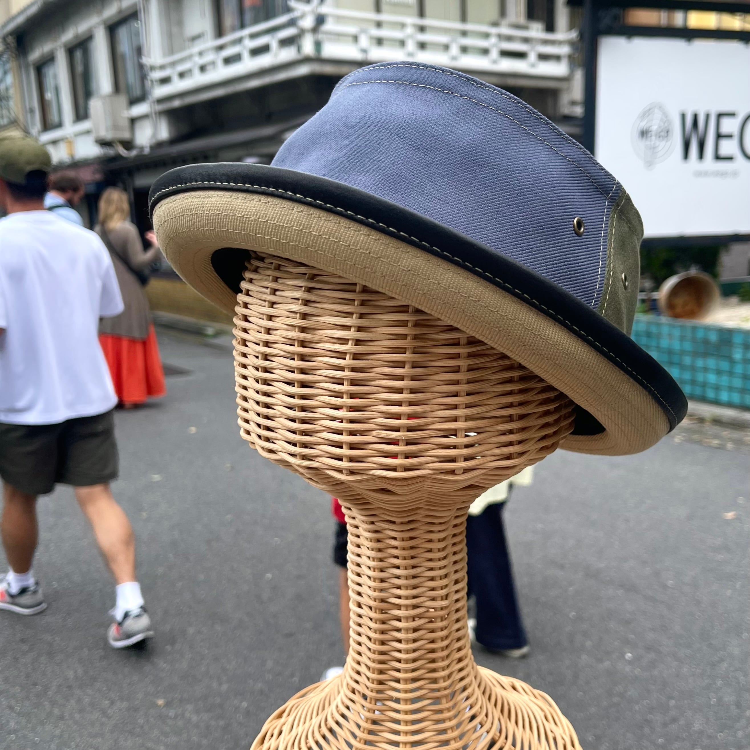 帽子のメイン、コットン部分はフランスのワークパンツを分析して作りあげたヴィンテージライクな生地を使用。
